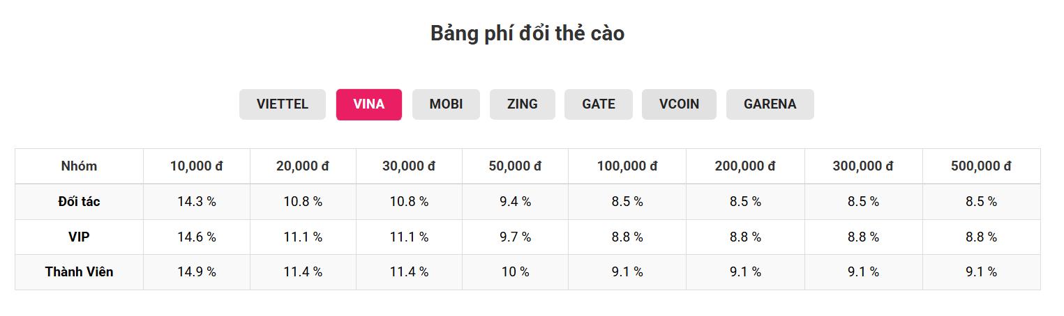 Việc đổi thẻ Vinaphone sang tiền mặt sẽ có mức chiết khấu nhất định. Thông thường, phí dịch vụ dao động khoảng 8,5 - 14,9% tùy theo mệnh giá và thời điểm.